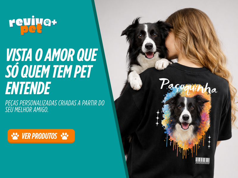 Criamos a Reviva Mais Pet para transformar esse vínculo em algo que vai além das lembranças. Desenvolvemos camisetas, bonés e canecas que representam a essência de cada pet, permitindo que tutores carreguem essa conexão de forma presente e duradoura.